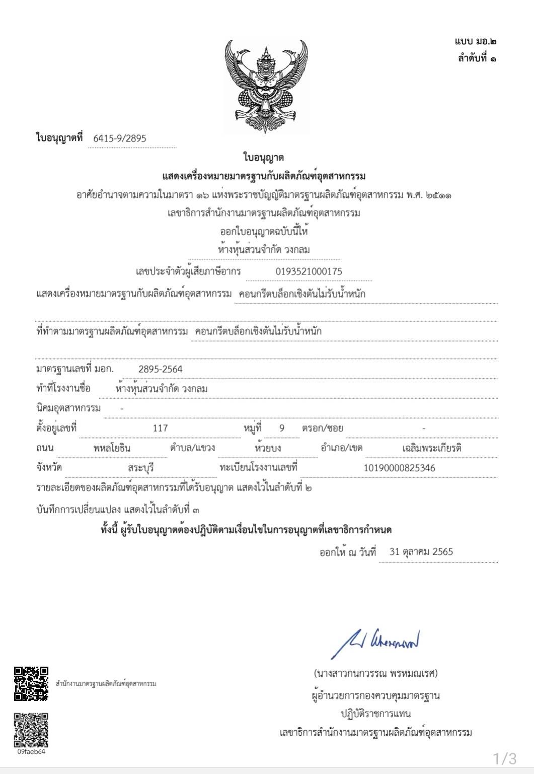 บริษัท วงกลม จำกัด, 24 หมู่ 9 ถ.พหลโยธิน ต.ห้วยบง อ.เฉลิมพระเกียรติ, สระบุรี